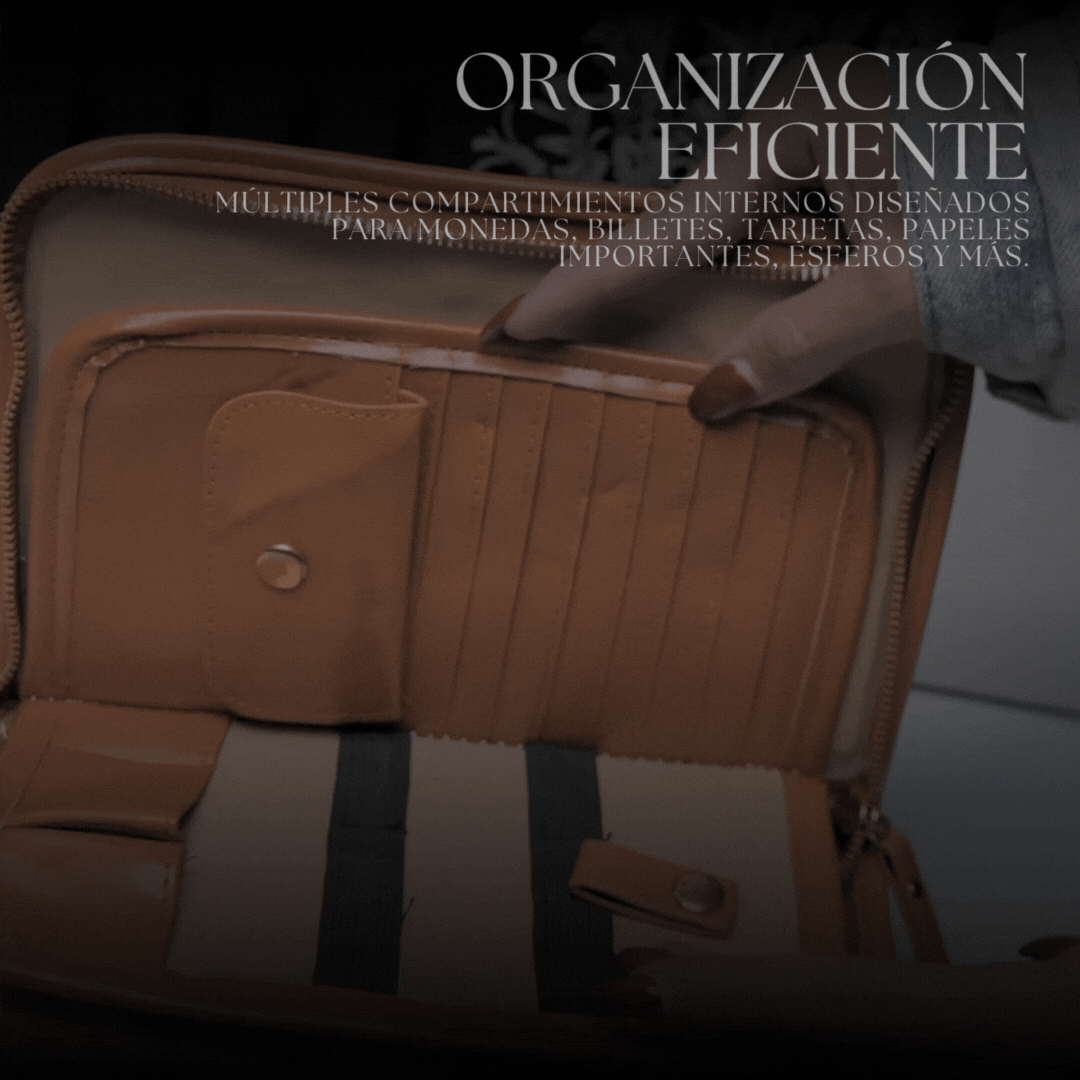 2. Organización eficiente: Múltiples compartimientos internos diseñados para monedas, billetes, tarjetas, papeles importantes, esferos y más.